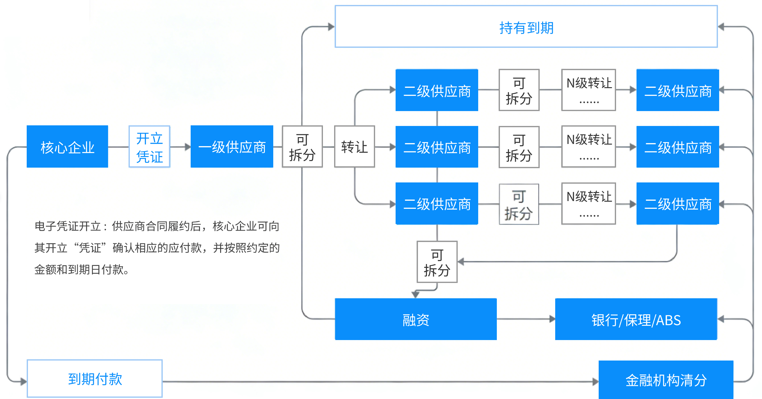 帝隆供应链债权多级流转平台解决方案,是围绕核心企业主业采购、支付场景所打造的可拆、可转、可融的电子债权凭证,将其优质企业信用转化为可流转、可融资、可灵活配置的一种创新型金融信息服务。核心企业通过供应链金融科技平台,以电子签名的方式,承诺在指定日期支付确定金额货款给供应商的,易流转、可拆分、可融资、可追溯的应收账款债权凭证,能有效解决中小微企业融资难、融资贵等问题。