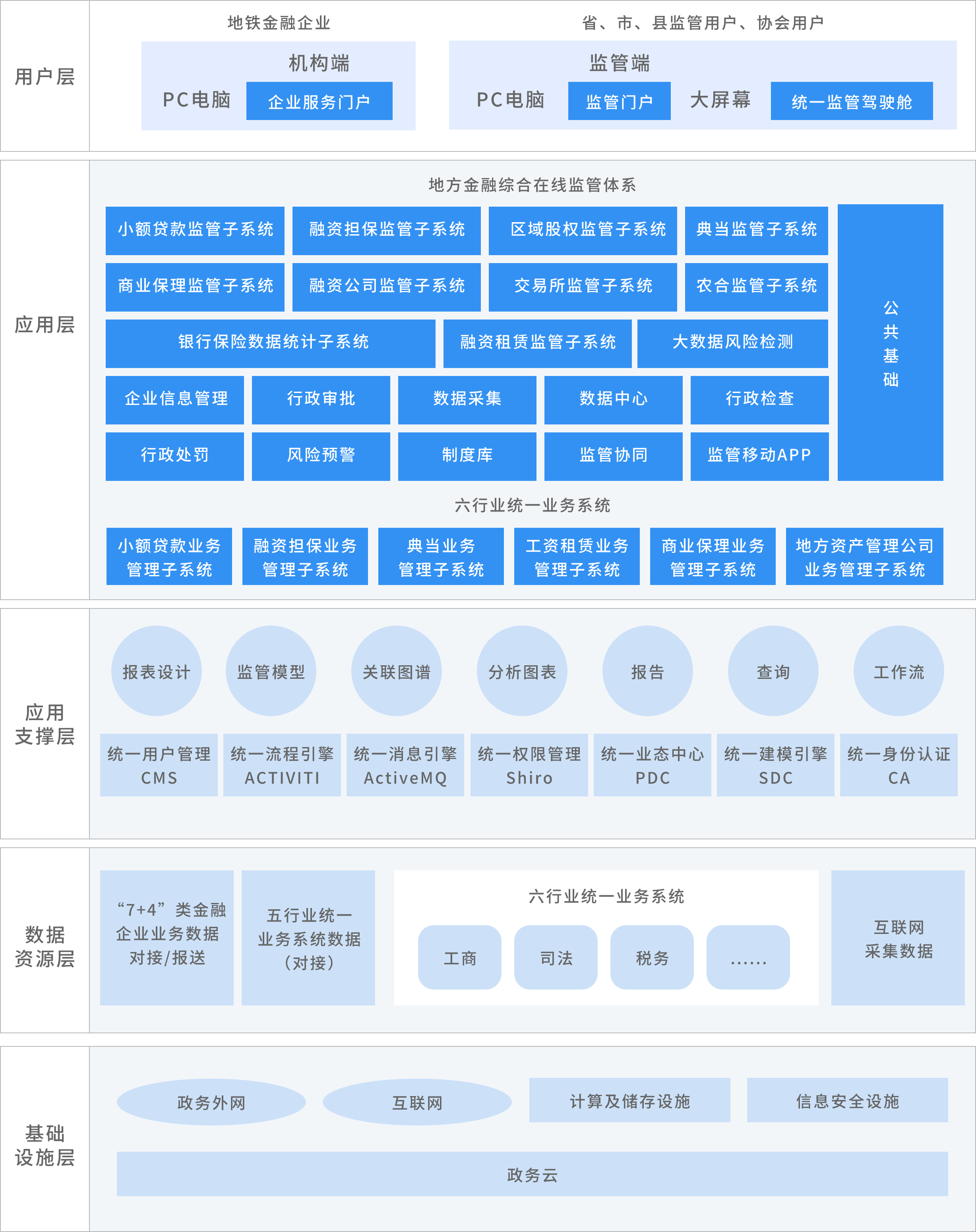 为小额贷款、融资担保、典当、融资租赁、商业保理行业、地方资产管理公司提供统一的业务系统,构建基本金融生态