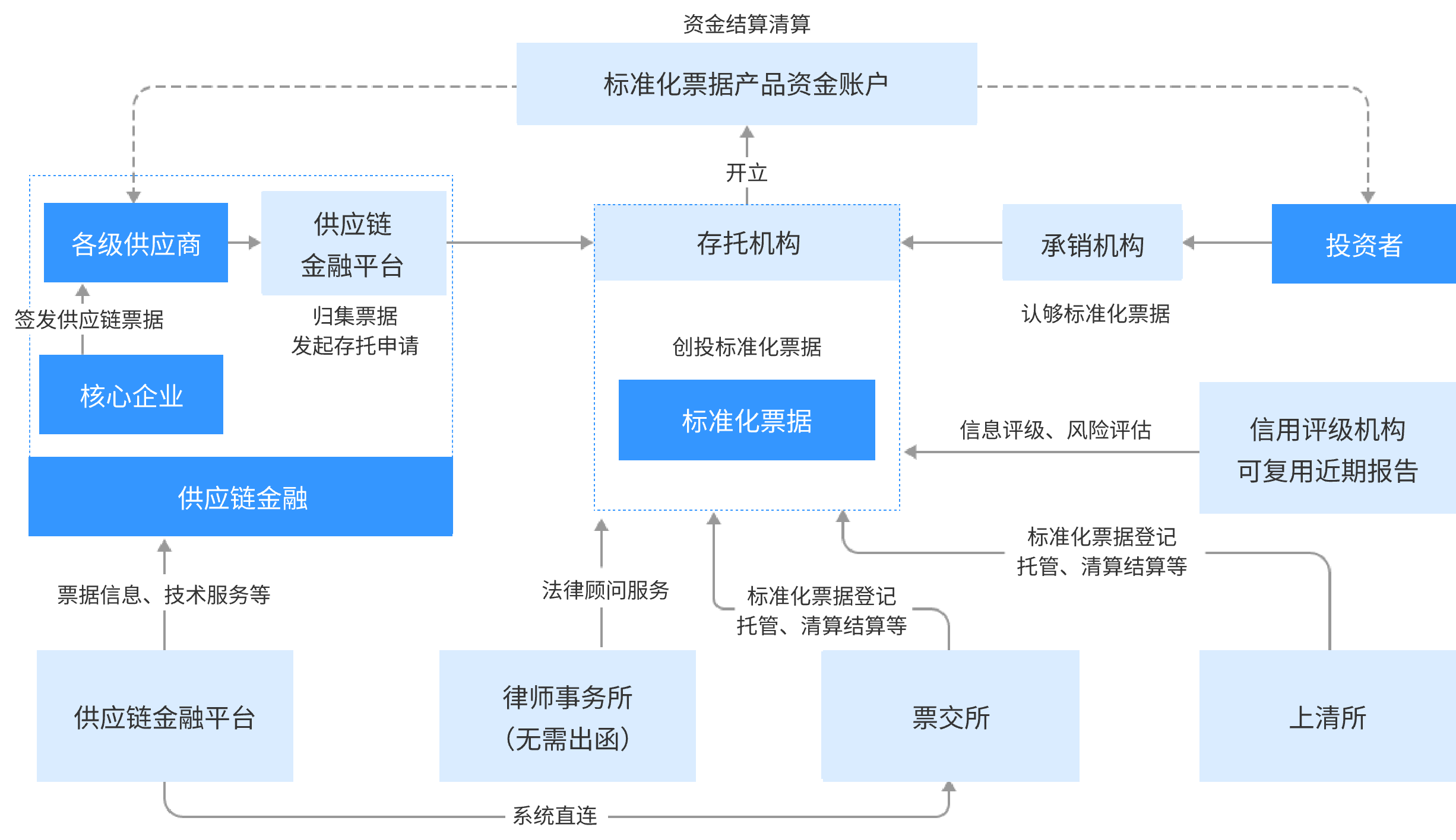 供应链票据平台是依托于票交所建设运营的票据系统,为企业提供供应链票据的签发、承兑、背书、融资、到期处理、信息服务全周期、一站式管理服务。供应链票据解决了传统票据无法实现拆分流转的难题,实现了核心企业信用的多级传导,能有效降低企业融资成本 供应链票据:是指企业通过供应链平台在供应链票据平台签发的可流转的电子商业汇票。